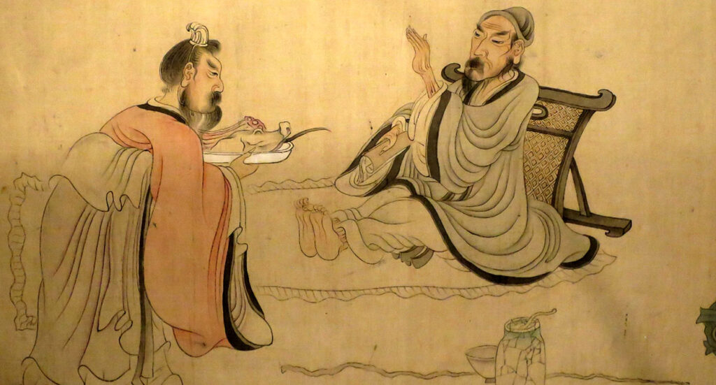 «Rehusando la comida». Imagenes del rollo titulado «Escenas de la vida de Tao Yuanming. Autor: Chan Hongshou, dinastía Qing (1650). Honolulu Museum of Art.